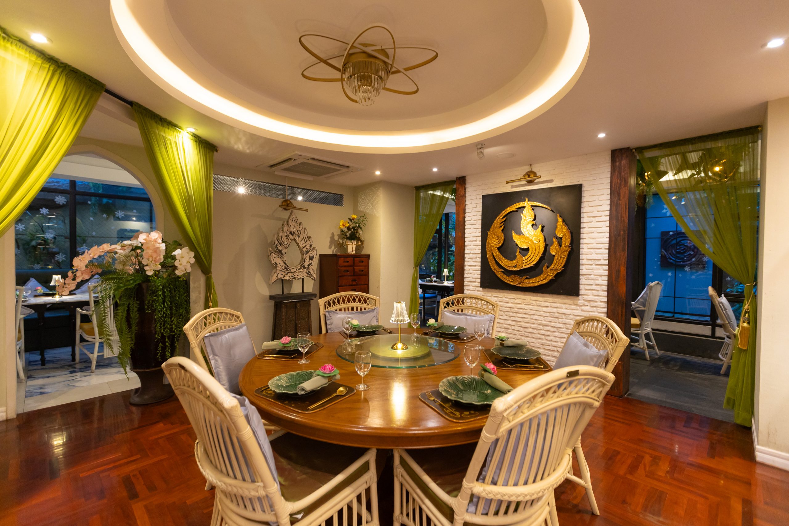 Inspired by the serenity of the Himmapan Forest, Kinnaree is designed to create a calm and charming atmosphere, where guests can relax and enjoy Thai cuisine in a space that feels both peaceful and inspiring.
